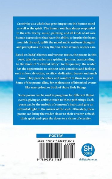 This poetry book consists of 9 chapters and 48 poems of various topics that will take the reader to a journey of love, devotion, sacrifice, history, dedication, martyrdom and more. The poems can be used for different Baha'i occasions giving an artistic touch to the gatherings. These poems are gifts to whoever would like to use them on occasions such as the above. The reader may encounter more than one poem on any topic, hence making it possible to use for different programs in a variety of occasions.