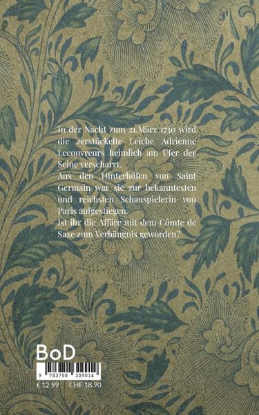 In der Nacht zum 21.März 1730 wird die zerstückelte Leiche Adrienne Lecouvreurs heimlich am Ufer der Seine verscharrt. Aus den Hinterhöfen von Saint Germain war sie zur bekanntesten und reichsten Schauspielerin von Paris aufgestiegen. Ist ihr die Affäre mit dem Cômte de Saxe zum Verhängnis geworden?