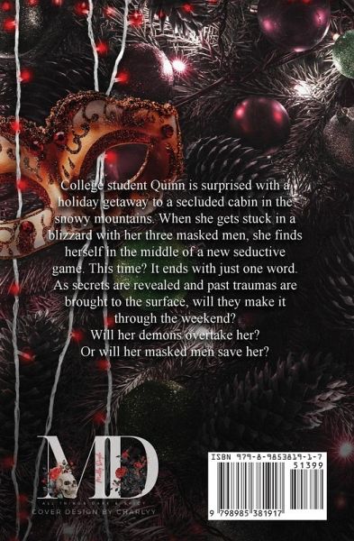 After going to a cabin in the woods, Quinn finds herself stuck in the midst of a blizzard with her three masked men. As they spend the holidays with one another, Quinn is left captivated. Christmas and New Year's Eve will never be the same. Tis the season for giving, and receiving. Holy, not so silent, night... - Reader discretion is advised for sensitive readers.