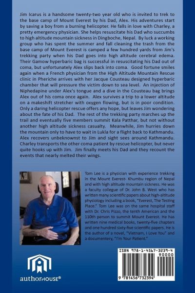 Jim Icarus is a handsome twenty-two year old who is invited to trek to the base camp of Mount Everest by his Dad, Alex. His adventures start by saving a boy from a burning helicopter. He falls in love with Charley, a pretty emergency physician. She helps resuscitate his Dad who succumbs to high altitude mountain sickness in Dingboche, Nepal. By luck a working group who has spent the summer and fall cleaning the trash from the base camp of Mount Everest is camped a few hundred yards from Jim's trekking party when his Dad goes into high altitude cerebral edema. Their Gamow hyperbaric bag is successful in resuscitating his Dad out of coma, but unfortunately Alex slips back into coma. Good fortune smiles again when a French physician from the High Altitude Mountain Rescue clinic in Pheriche arrives with her Jacque Cousteau designed hyperbaric chamber that will pressure the victim down to sea level. An injection of Niphedapine under Alex's tongue and a dive in the Cousteau bag brings Alex out of his coma once again. Alex survives a trip to a lower altitude on a makeshift stretcher with oxygen flowing, but is in poor condition. Only a daring helicopter rescue offers any hope, but leaves Jim wondering about the fate of his Dad. The rest of the trekking party marches up the trail and eventually five members summit Kala Patthar, but not without another high altitude sickness casualty. Meanwhile, Jim hurries down the mountain only to have to wait in Lukla for a flight back to Kathmandu. Alex recovers unbeknownst to Jim and sight sees around Kathmandu. Charley transports the other coma patient by rescue helicopter, but never quite hooks up with Jim. Jim finally meets his Dad and they recount the events that nearly melted their wings.