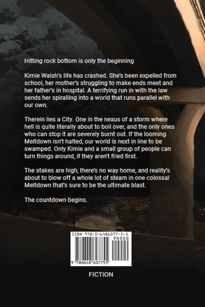 Hitting rock bottom is only the beginning Kimie Walsh's life has crashed. She's been expelled from school, her mother's struggling to make ends meet and her father's in hospital. A terrifying run in with the law sends her spiralling into a world that runs parallel with our own. Therein lies a City. One in the nexus of a storm where hell is quite literally about to boil over, and the only ones who can stop it are severely burnt out. If the looming Meltdown isn't halted, our world is next in line to be swamped. Only Kimie and a small group of people can turn things around, if they aren't fried first. The stakes are high, there's no way home, and reality's about to blow off a whole lot of steam in one colossal Meltdown that's sure to be the ultimate blast. The countdown begins.
