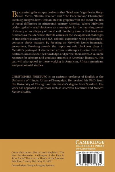 By examining the unique problems that 'blackness' signifies in Moby-Dick, Pierre, 'Benito Cereno' and 'The Encantadas', Christopher Freeburg analyzes how Herman Melville grapples with the social realities of racial difference in nineteenth-century America. Where Melville's critics typically read blackness as either a metaphor for the haunting power of slavery or an allegory of moral evil, Freeburg asserts that blackness functions as the site where Melville correlates the sociopolitical challenges of transatlantic slavery and US colonial expansion with philosophical concerns about mastery. By focusing on Melville's iconic interracial encounters, Freeburg reveals the important role blackness plays in Melville's portrayal of characters' arduous attempts to seize their own destiny, amass scientific knowledge and perfect themselves. A valuable resource for scholars and graduate students in American literature, this text will also appeal to those working in American, African American and postcolonial studies.