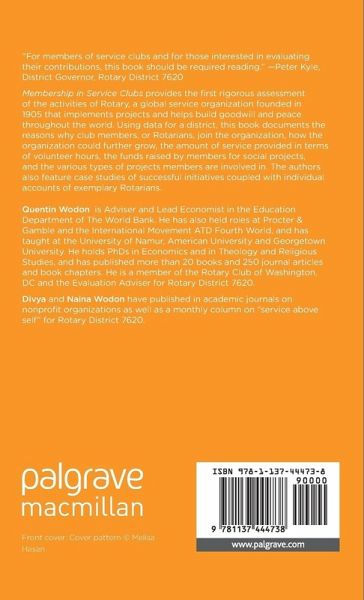 "This book should be required reading for members of service clubs around the world and for those interested in evaluating the contributions of volunteers. Very little research is publicly available on the impact of service clubs, the challenges they face and the opportunities they have. The book is based in part on surveys and interviews conducted for District 7620 (central Maryland and Washington, DC) but is also relevant for other districts. It considers seven main questions: What is the membership challenge faced by clubs?; Who are their members, and how satisfied are they with their club experience?; How can areas for growth be identified?; How can clubs innovate to attract and retain members?; How much service work do clubs engage in?; What types of work do they do, and what makes projects successful?; And finally, how can district events be more engaging? While the book is based on rigorous research, it is written in a very readable way so that service club members and those interested in their work can learn from the research and better succeed in their mission." - Peter Kyle, District Governor, Rotary District 7620