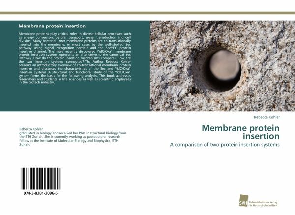 Membrane proteins play critical roles in diverse cellular processes such as energy conversion, cellular transport, signal transduction and cell division. Many bacterial inner membrane proteins are co-translationally inserted into the membrane, in most cases by the well-studied Sec pathway using signal recognition particle and the SecYEG protein insertion channel. The more recently discovered YidC/Oxa1 membrane protein insertion system represents an alternative to the canonical Sec Pathway. How do the protein insertion mechanisms compare? How are the two insertion systems connected? The Author Rebecca Kohler presents an introductory overview of co-translational membrane protein insertion and discusses the characteristics of the Sec and YidC/Oxa1 insertion systems. A structural and functional study of the YidC/Oxa1 system forms the basis for the following analysis. This book addresses researchers and students in life sciences as well as scientific employees in the biotech industry.