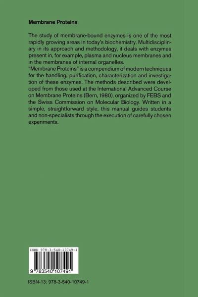 The growing interest in the field of biological membranes in recent years is documented by the very large number of articles, reviews, journals and books which are appearing in this field. Why then now a manual on "Membrane Proteins"? The answer is multifold. The protocols which were distributes by the teachers and lecturers at the FEBS-SKMB Course organized in Bern appeared to be very useful not only during the Course to correctly perform the experi ments, but also for the future benefit of other students and other curses. To us they appeared very modern and of simple execution, ideal for a Uni versity Advanced Course, a Summer School, or similar scientific initiatives. The possibility was also foreseen that such a manual could be used by pro fessional scientists, although not initiated into the problems, assumptions and intricacies of biochemical methodology. There are also many research teams who study proteins, for example of human fluids, and who will certainly be interestedin the application of new but simply described methods. At the same time we present the student with some more complicated physical techniques which are, however, simply described and easy to execute.