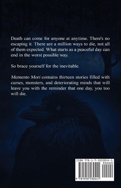 Death can come for anyone at anytime. There's no escaping it. There are a million ways to die, not all of them expected. What starts as a peaceful day can end in the worst possible way. So brace yourself for the inevitable. Memento Mori contains thirteen stories filled with curses, monsters, and deteriorating minds that will leave you with the reminder that one day, you too will die. ~~~~~~~~~~~~~~~~~~~~~~~~~ Stories Include: I.O.U.: A serial killer looking for his next victim meets his match. A Concert to Die For: A struggling musician finally gets the opportunity he's dreamed of, but how many lives will he be willing to trade for it? When it Comes: When it comes, never deny it's request. Treat it with kindness or be cursed to a life of regret. Dolls: After an incident at a high school reunion, voodoo dolls start appearing around town. Wherever they go, tragedy follows. Footsteps: When a medium learns the truth of her powers, she meets her biggest challenge yet in an entity that gets its powers from hunting psychics. The Day You Killed Me: When Blythe wakes up in a trash bag, she has to go on a quest to solve her own murder. Secrets of the Quiet Visitor: A burglar breaks into the wrong house. Don't Look: The rule is easy: don't look at the monster, and you'll be safe. How long will Lizey survive? Stockholm Syndrome: Avera wakes in an experimental facility with no memory of who she is or how she got there. Dreamcatcher: Not all dreamcatchers give good dreams. Some make nightmares. Mirror image: A creepy mirror in the attic of Clayton and Myra's new home holds a deadly secret. Fear: A maze full of nightmares and one hour to make it out alive. Happy Birthday: After a near-death experience on her birthday, Angel finds herself afflicted with an unfortunate curse.