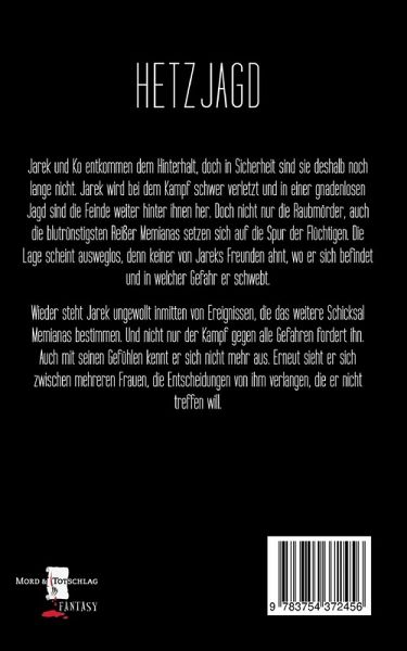 Jarek und Ko entkommen dem Hinterhalt, doch in Sicherheit sind sie deshalb noch lange nicht. Jarek wird bei dem Kampf schwer verletzt und in einer gnadenlosen Jagd sind die Feinde weiter hinter ihnen her. Doch nicht nur die Raubmörder, auch die blutrünstigsten Reißer Memianas setzen sich auf die Spur der Flüchtigen. Die Lage scheint ausweglos, denn keiner von Jareks Freunden ahnt, wo er sich befindet und in welcher Gefahr er schwebt.Wieder steht Jarek ungewollt inmitten von Ereignissen, die das weitere Schicksal Memianas bestimmen. Und nicht nur der Kampf gegen alle Gefahren fordert ihn. Auch mit seinen Gefühlen kennt er sich nicht mehr aus. Erneut sieht er sich zwischen mehreren Frauen, die Entscheidungen von ihm verlangen, die er nicht treffen will.