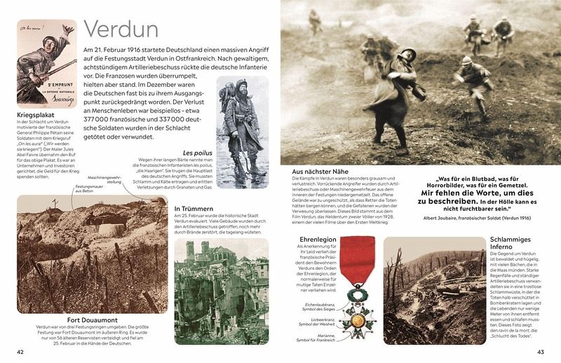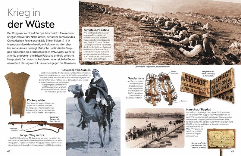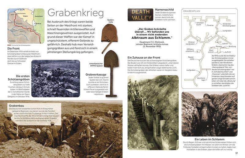 Was war der Auslöser für den Ersten Weltkrieg? Wie waren die Soldaten an der Ostfront ausgestattet? Und warum kam es zu einem jahrelangen Grabenkrieg? Dieses Sachbuch ermöglicht Kindern ab 8 Jahren einen fundierten Überblick über die Ursachen, den Verlauf und die Folgen des Ersten Weltkriegs. Es informiert umfassend und altersgerecht über die Hintergründe und veranschaulicht den globalen Krieg und die internationalen Schauplätze durch anschauliche Bilder.