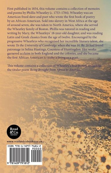 First published in 1834, this volume contains a collection of memoirs and poems by Phillis Wheatley (c. 1753¿1784). Wheatley was an American freed slave and poet who wrote the first book of poetry by an African-American. Sold into slavery in West Africa at the age of around seven, she was taken to North America, where she served the Wheatley family of Boston. Phillis was tutored in reading and writing by Mary, the Wheatleys' 18-year-old daughter, and was reading Latin and Greek classics from the age of twelve. Encouraged by the progressive Wheatleys who recognised her incredible literary talent, she wrote "To the University of Cambridge" when she was 14. By 20 had found patronage in Selina Hastings, Countess of Huntingdon. Her works garnered acclaim in Both England and the colonies, and she became the first African American to make a living as a poet. This volume contains a collection of Wheatley's best poetry, including the titular poem "Being Brought from Africa to America". Contents include: "To Mæcenas", "On Virtue", "On Bring Brought from Africa to America", "To the University of Cambridge, in New-England", "To the King's Most Excellent Majesty 1768", "On the Death of the Rev. Dr. Sewell 1769", "On the Death of the Rev. Mr. George Whitefield 1770", "On the Death of a Young Lady of Five Years of Age", etc. Ragged Hand is proudly republishing this classic collection of poetry in a new edition, complete with an introductory chapter by L. Maria Child.