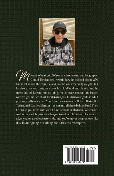 "Memoir of a Bank Robber" is a fascinating autobiography. Gerald Heckathorn reveals how he robbed about 250 banks all across the country, and how he was eventually caught. But he also gives you insights about his childhood and family, and he traces his adolescent crimes, his juvenile incarceration, his battles with drugs, his two short-lived marriages, his harrowing life in adult prisons, and his escapes. You'll even see cameos by Robert Blake, Ike Turner, and Charles Manson - he ran into all three behind bars! Then he brings you up to date with his retirement in Madison, Wisconsin. And at the end, he gives you his guilt-ridden reflections. Heckathorn takes you on a rollercoaster ride, and you've never been on one like this. It's intriguing, disturbing, and ultimately redemptive.