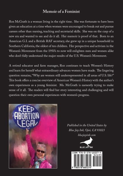 Roz McGrath is a woman living in the right time. She was fortunate to have been given an education at a time when women were encouraged to break out and pursue careers other than nursing, teaching and secretarial skills. She was on the cusp of a new era and wanted to see and do it all. Her memoir is proof of that. Born to an American G.I. and a British RAF secretary, she grew up in a unique household in Southern California, the oldest of ten children. Her perspective and activism in the women's movement from the 1950's to now will enlighten men and women alike, who don't fully understand the major results of the US Women's Movement. A retired educator and farm manager, Roz continues to teach Women's History and learn for herself what extraordinary advances women have made. The lingering question remains, "Why are women still underrepresented in all areas of U.S. life?" This book offers a concise overview of American Women's history with the author's own experiences as a young feminist. Ms. McGrath is earnestly trying to make sense of it all. The readers will find her story interesting and challenging and will end up questioning their own personal experiences with women's progress.