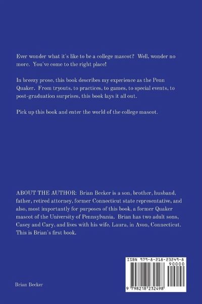 Ever wonder what it's like to be a college mascot? Well, wonder no more. You've come to the right place! In breezy prose, this book describes my experience as the Penn Quaker. From tryouts, to practices, to games, to special events, to post-graduation surprises, this book lays it all out. Pick up this book and enter the world of the college mascot.