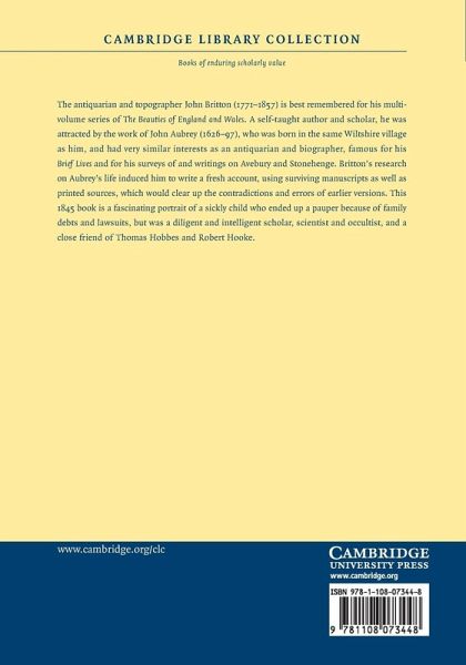 The antiquarian and topographer John Britton (1771-1857) is best remembered for his multi-volume series of The Beauties of England and Wales. A self-taught author and scholar, he was attracted by the work of John Aubrey (1626-97), who was born in the same Wiltshire village as him, and had very similar interests as an antiquarian and biographer, famous for his Brief Lives and for his surveys of and writings on Avebury and Stonehenge. Britton's research on Aubrey's life induced him to write a fresh account, using surviving manuscripts as well as printed sources, which would clear up the contradictions and errors of earlier versions. This 1845 book is a fascinating portrait of a sickly child who ended up a pauper because of family debts and lawsuits, but was a diligent and intelligent scholar, scientist and occultist, and a close friend of Thomas Hobbes and Robert Hooke.