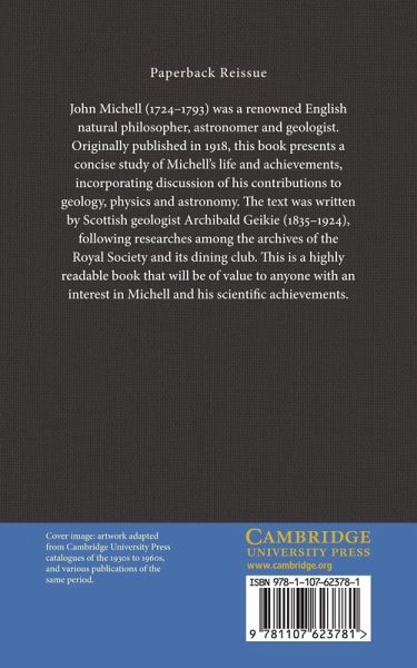 John Michell (1724-93) was a renowned English natural philosopher, astronomer and geologist. Originally published in 1918, this book presents a concise study of Michell's life and achievements, incorporating discussion of his contributions to geology, physics and astronomy. The text was written by Scottish geologist Archibald Geikie (1835-1924), following researches among the archives of the Royal Society and its dining club. This is a highly readable book that will be of value to anyone with an interest in Michell and his scientific achievements.
