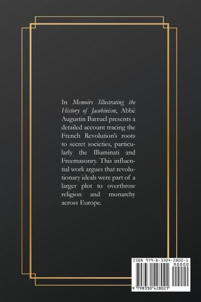 In Memoirs Illustrating the History of Jacobinism, Abbé Augustin Barruel presents a detailed account tracing the French Revolution's roots to secret societies, particularly the Illuminati and Freemasonry. This influential work argues that revolutionary ideals were part of a larger plot to overthrow religion and monarchy across Europe.