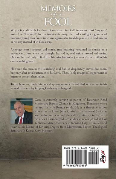 Why is it so difficult for those of us created in God's image to think "my way" instead of "His way?" In this true-to-life story, the reader will get a glimpse of how one young man failed time, and again as he tried desperately to find success in his way instead of in God's way. Although near successes did come, true meaning remained as elusive as a moonbeam. Just when he thought he had it, realization proved otherwise. Onward he trod only to find that his prize had to be just over the next hill of his ever-searching heart. However, the success this searching soul had so desperately craved did come, but only after total surrender to his Lord. Then, "only imagined" opportunities began to present themselves. Today, however, finds this once desperate seeker's life fulfilled as he serves in his second pastorate by keeping God's way as his guide. Gene is currently serving as pastor of Reservoir Road Missionary Baptist Church in Kingsport, Tennessee where he and his wife Brenda reside. He is a first-time author who came to know Jesus Christ as his personal Savior at age twelve and accepted the call to ministry in his latter twenties. His undergraduate studies were completed at East Tennessee State University in Johnson City, Tennessee, and received his Master of Divinity Degree from Midwestern Baptist Theological Seminary in Kansas City, Missouri.