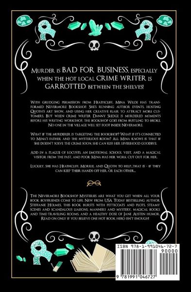 Murder is bad for business, especially when the hot local crime writer is garrotted between the shelves! With grudging permission from Heathcliff, Mina Wilde has transformed Nevermore Bookshop. She's running author events, hosting Quoth's art show, and using her creative flair to attract more customers. But when crime writer Danny Sledge is murdered moments before his writing workshop, the bookshop goes from bustling to broke. No one in the village will set foot inside Nevermore. What if the murderer is targeting the bookshop? What if it's connected to Mina's father and the mysterious room? All Mina knows is that if she doesn't solve the crime soon, she can kiss her livelihood goodbye. Add in a plague of locusts, an emotional school visit, and a magical visitor from the past, and poor Mina has her work cut out for her. Luckily, she has Heathcliff, Morrie, and Quoth to help... that is - if they can keep their hands off her, or each other... The Nevermore Bookshop Mysteries are what you get when all your book boyfriends come to life. Join a brooding antihero, a master criminal, a cheeky raven, and a heroine with a big heart (and an even bigger book collection) in this brand new steamy reverse harem paranormal mystery series by USA Today bestselling author Steffanie Holmes.