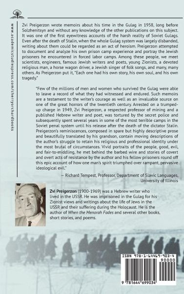Zvi Preigerzon (1900-1969) was a Hebrew writer who lived in the USSR. He was imprisoned in the Gulag for his Zionist views and writings about the life of Jews in the USSR and their suffering during the Holocaust. He is the author of When the Menorah Fades and several other books, short stories, and poems.