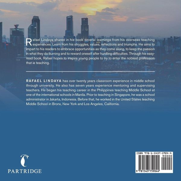 Rafael Lindaya shares in his book several learnings from his overseas teaching experiences. Learn from his struggles, values, reflections and triumphs. He aims to impart to his readers to embrace opportunities as they come along, to keep the passion in what they do burning and to reward oneself after hurdling difficulties. Through his easy-read book, Rafael hopes to inspire young people to try to enter the noblest profession that is teaching.