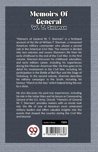 "Memoirs of General W. T. Sherman" is a firsthand account of the life of William T. Sherman, a renowned American military commander who played a pivotal role in the American Civil War. The memoir is divided into two volumes and covers Sherman's life from his early childhood to the end of the Civil War. In the first volume, Sherman discusses his childhood, education, and early military career, including his experiences during the Mexican-American War. He then goes on to detail his involvement in the Civil War, including his participation in the Battle of Bull Run and the Siege of Vicksburg. In…mehr