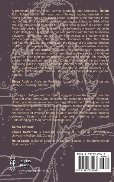 A prominent novelist, social activist, journalist, and nationalist, Halide Adivar Edib (1882-1964) was one of Turkey's leading feminists in the Young Turk and early Republican period. Memoirs is the first book in her two volume English-language autobiography, published in 1926, whilst she and her second husband Dr. Adnan were in exile in London and Paris having fallen out of favor with Mustafa Kemal's one-party regime. Ýn it Edib describes her childhood, her confrontation with her first husband's polygyny, her divorce, and her entry into political and literary writing. Providing an account of the Young Turk Revolution of 1908, the Balkan and First World Wars, and ending with the demise of the Ottoman Empire in 1918, Edib explains her philosophy of pacifist nationalism, and her ideas on Islam and Islamic civilisation. Her retrospective account of Young Turk and nationalist politics, emphasizing the agency of Ottoman women in their fight for emancipation, aimed to redress the Kemalist account of Republican historiography, which undermined the activities of the Young Turks in order to praise the reforms of the Republican period. Edib's account of her private life provides a unique example of a woman's individual and personal struggle for emancipation and gender equality. Hülya Adak is Assistant Professor in the Cultural Studies Program, Sabanci University, Istanbul, Turkey. Cultures in Dialogue returns to print sources by women writers from the East and West. Series One considers the exchanges between Ottoman, British, and American women from the 1880s to the 1940s. Their varied responses to dilemmas such as nationalism, female emancipation, race relations and modernization in the context of the stereotypes characteristic of Western harem literature reframe the historical tensions between Eastern and Western cultures, offering a nuanced understanding of their current manifestations.