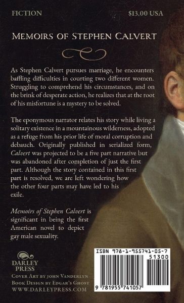 As Stephen Calvert pursues marriage, he encounters baffling difficulties in courting two different women. Struggling to comprehend his circumstances, and on the brink of desperate action, he realizes that at the root of his misfortune is a mystery to be solved. The eponymous narrator relates his story while living a solitary existence in a mountainous wilderness, adopted as a refuge from his prior life of moral corruption and debauch. Originally published in serialized form, Calvert was projected to be a five part narrative but was abandoned after completion of just the first part. Although the story contained in this first part is resolved, we are left wondering how the other four parts may have led to his exile. Memoirs of Stephen Calvert is significant in being the first American novel to depict gay male sexuality (published in 1799-1800).