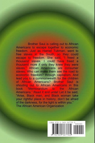 Brother Saul is calling out to African Americans to escape together to economic freedom. Just as Harriet Tubman, went to free slaves in the South, so they could escape to freedom. She said, "I freed a thousand slaves, I could have freed a thousand more if only they knew they were slaves." African Americans are consumer slaves; Who can make them see the road to economic freedom? through capitalism. And lead you to a commonwealth for the children of African Americans?