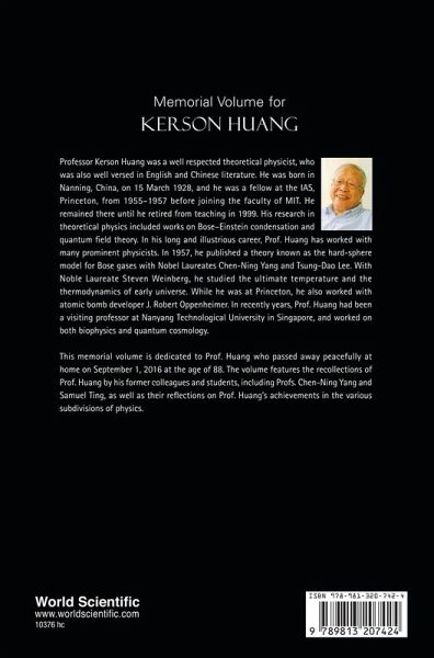Professor Kerson Huang was a well respected theoretical physicist, who was also well versed in English and Chinese literature. He was born in Nanning, China, on 15 March 1928, and he was a fellow at the IAS, Princeton, from 1955–1957 before joining the faculty of MIT. He remained there until he retired from teaching in 1999. His research in theoretical physics included works on Bose–Einstein condensation and quantum field theory. In his long and illustrious career, Prof. Huang has worked with many prominent physicists. In 1957, he published a theory known as the hard-sphere model for Bose gases with Nobel Laureates Chen-Ning Yang and Tsung-Dao Lee. With Noble Laureate Steven Weinberg, he studied the ultimate temperature and the thermodynamics of early universe. While he was at Princeton, he also worked with atomic bomb developer J. Robert Oppenheimer. In recently years, Prof. Huang had been a visiting professor at Nanyang Technological University in Singapore, and worked on both biophysics and quantum cosmology. This memorial volume is dedicated to Prof. Huang who passed away peacefully at home on September 1, 2016 at the age of 88. The volume features the recollections of Prof. Huang by his former colleagues and students, including Profs Chen-Ning Yang and Samuel Ting, as well as their reflections on Prof. Huang's achievements in the various subdivisions of physics.