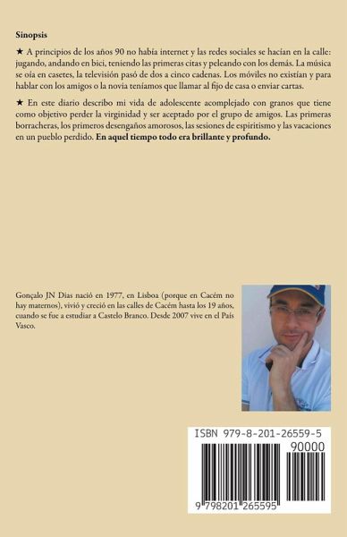 Sinopsis ¿A principios de los años 90, no existía Internet y las redes sociales se construían en la calle: jugando, andando en bici, teniendo las primeras citas y peleando con los demás. La música se escuchaba en casetes, y la televisión pasó de tener dos a cinco cadenas. Los móviles aún no eran una realidad, y para comunicarnos con amigos o novias teníamos que llamar al teléfono fijo de casa o enviar cartas. ¿ En este diario, relato mi vida como adolescente con complejos por los granos, cuyo objetivo es conseguir una novia y ser aceptado por el grupo de amigos. Las primeras borracheras, los primeros desengaños amorosos, las sesiones de espiritismo y las vacaciones en un pueblo perdido. En aquel entonces, todo parecía brillante y profundo.
