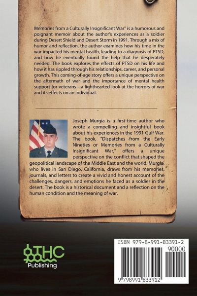 "Memories from a Culturally Insignificant War" is a humorous and poignant memoir about the author's experiences as a soldier during Desert Shield and Desert Storm in 1991. Through a mix of humor and reflection, the author examines how their time in the war impacted their mental health, leading to a diagnosis of PTSD, and how he eventually found the help that he needed. The book explores the effects of PTSD on their life and how it has rippled through their relationships, careers, and personal growth. This coming-of-age story offers a unique perspective on the aftermath of war and the importance of mental health support for veterans-a lighthearted look at the horrors of war and its effects on an individual.