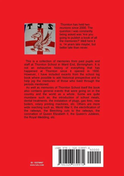 This book is a short history of Thornton School in Ward End Birmingham since opening in 1930 up till the present day. During its hisotry it has been known as Thornton School, Thornton Junior School and Thornton Primary School. Hence I have opted for the general Thornton School title. It includes memories of past pupils and staff, photos, certificates, copies of reports and excerts from the school log book, along with refernces to general events that were happening in the country and world at the time.