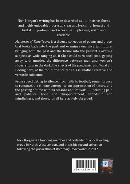 A second collection of 49 poems and 7 short stories by Nick Horgan. In similar vein to Breathing Underwater, Nick covers everything happening in the world, macro and micro, people and places, good experiences and bad experiences, memories, things unsaid, contradictions between what we see and what we know, connections between the physical and material and the emotional, spiritual, the constant change and comparison of modern life, and everything your imagination can open up, make connections, build up, revise, refocus, examine and explore to take you from the initial seed to a finished piece.