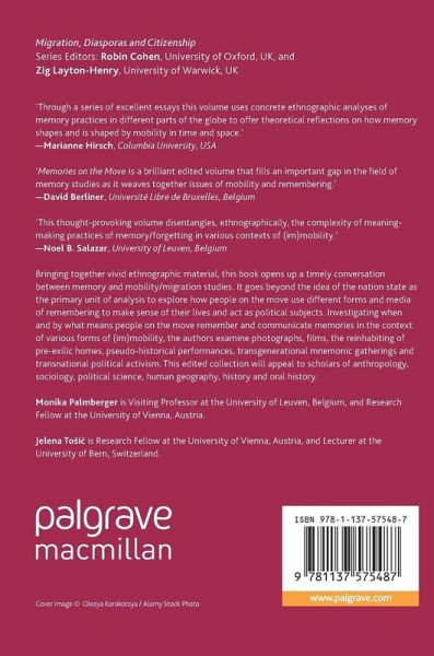 'Memories on the Move is a brilliant edited volume that fills an important gap in the field of memory studies as it weaves together issues of mobility and remembering. Drawing on fine-grained ethnographical cases, it offers a rich and complex portrait of mnemonic constructions in the context of forced migration, exile and transnationalism. It is clearly a must-read for anthropologists, sociologists, historians and political scientists as well as for all scholars interested in the contemporary dynamics of memory, identity and mobility.' - David Berliner, Université Libre de Bruxelles, Belgium