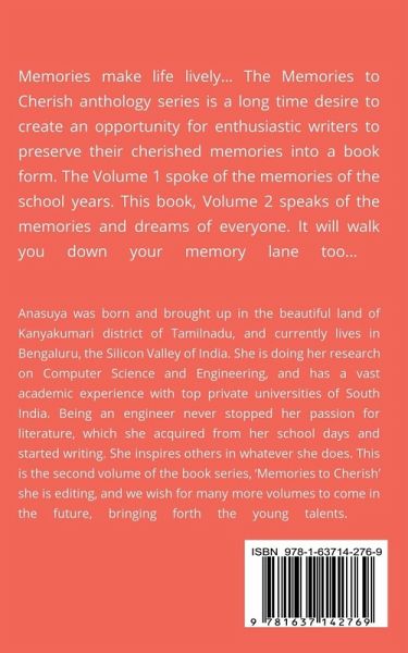 Memories make life lively… The Memories to Cherish anthology series is a long time desire to create an opportunity for enthusiastic writers to preserve their cherished memories into a book form. The Volume 1 spoke of the memories of the school years. This book, Volume 2 speaks of the memories and dreams of everyone. It will walk you down your memory lane too...