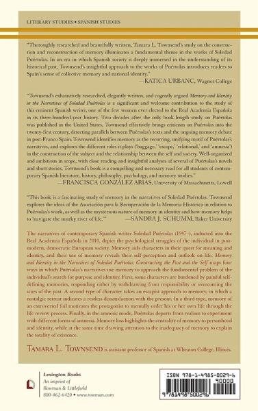 This study provides a comprehensive look at the writings of Soledad Puértolas, 2010 inductee into the Real Academia Española, and the ways in which the contemporary individual in Spain constructs meaning and identity through memory.