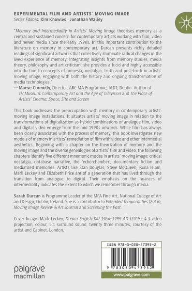 This book addresses the preoccupation with memory in contemporary artists' moving image installations. It situates artists' moving image in relation to the transformations of digitalization as hybrid intermedial combinations of analogue film, video and digital video emerge from mid 1990s onwards. While film has always been closely associated with the process of memory, this book investigates new models of memory in artists' remediation of film with video and other intermedial aesthetics. Beginning with a chapter on the theorization of memory and the moving image and the diverse genealogies of artists' film and video, the following chapters identify five different mnemonic modes in artists' moving image: critical nostalgia, database narrative, the 'echo-chamber', documentary fiction and mediatized memories. Stan Douglas, Steve McQueen, Runa Islam, Mark Leckey and Elizabeth Price are of a generation that has lived through the transition from analogue to digital. Their emphasis on the nuances of intermediality indicates the extent to which we remember through media.