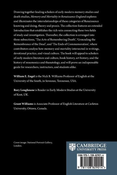 Introduction: Between memory and death William E. Engel, Rory Loughnane and Grant Williams Part I. The Arts of Remembering Death: 1. Death and the art of memory in Donne Rebeca Helfer 2. Spiritual accountancy in the age of Shakespeare Jonathan Baldo 3. Recollection and preemptive resurrection in Shakespeare's sonnets John S. Garrison 4. Learn how to die Scott Newstok Part II. Grounding the Remembrance of the Dead: 5. Memory, climate, and mortality: The Dudley women among the fields Patricia Phillippy 6. Scattered bones, martyrs, materiality and memory in Drayton and Milton Philip Schwyzer 7. Theatrical monuments in Middleton's A game at chess Brian Chalk 8. Thomas Browne's retreat to earth Claire Preston Part III. The Ends of Commemoration: 9. The Unton portrait reconsidered Peter Sherlock 10. Andrew Marvell's taste for death Anita Gilman Sherman 11. The many labours of mourning a virgin queen Andrew Hiscock 12. Superfluous men and the graveyard politics of the Duchess of Malfi Michael Neill Bibliography Index.