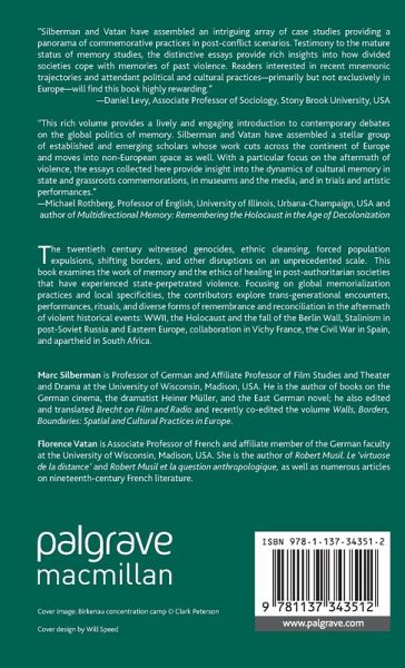"Marc Silberman and Florence Vatan have assembled an intriguing array of case studies providing a panorama of commemorative practices in post-conflict scenarios. Testimony to the mature status of memory studies, the distinctive essays provide rich insights into how divided societies cope with memories of past violence. Readers interested in recent mnemonic trajectories and attendant political and cultural practices - primarily but not exclusively in Europe - will find this book highly rewarding." - Daniel Levy, Associate Professor of Sociology, Stony Brook University, USA 'This rich volume provides a lively and engaging introduction to contemporary debates on the global politics of memory. Silberman and Vatan have assembled a stellar group of established and emerging scholars whose work cuts across the continent of Europe and moves into non-European space as well. With a particular focus on the aftermath of violence, the essays collected here provide insight into the dynamics of cultural memory in state and grassroots commemorations, in museums and the media, and in trials and artistic performances.' - Michael Rothberg, Professor of English, University of Illinois, Urbana-Champaign, USA, and author of Multidirectional Memory: Remembering the Holocaust in the Age of Decolonization