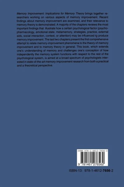 Memory Improvement: Implications for Memory Theory brings together researchers working on various aspects in the field. Recent findings on memory improvement are examined, and their relevance to memory theory is demonstrated. A majority of the chapters review how certain psychological factors (psychopharmacology, emotional state, metamemory, strategies, practice, external aids, social interaction, context, and attention) may be influenced to improve one's memory. In the final chapters an attempt is made to relate memory-improvement phenomena to the theory of memory improvement and to memory theory in general. This book extends understanding of memory and questions to what extent the memory system functions independently of the rest of the psychological system. The book is aimed at a broad spectrum of psychologists interested in state-of-the-art memory-improvement research from both a practical and a theoretical perspective.