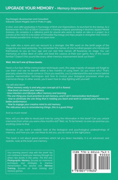 You walk into a room and can recount to a stranger, the fifth word on the tenth page of the magazine you read yesterday. You remember the names of one hundred people who introduced themselves to you an hour ago and can reel their names off flawlessly on stage. You can memorize an entire deck of cards and beat the casinos at their own game. Any of this sound familiar? Doesn't this sound like every other memory improvement book out there? Well, this isn't one of those books. Here's a fun fact: While memorization techniques work, the large majority of people will forget to use them and see no benefit within a few months of using them. Do you know why? That's precisely where this book comes in. Once you read this, you'll understand the real science behind popular memorization techniques and how to involve your biological processes when you memorize things. In other words, you'll learn how to stop fighting with yourself. You will also learn: What memory really is and why your concept of it is flawed. How food can boost your memory. How intention and lifestyle affect memory and learning. The one thing you must prioritize to aid memory...and it ain't memorization techniques! How to eliminate the one thing that is holding you back and work to unleash your memory for better performance. How to engage your creative mind to aid memory. The ridiculous way to remembering things...this is a good thing! And so much more! Now, will you be able to recall past lives by using the information in this book? Can you unlock memories from when you were a few months old? Well, no. To be honest, no one can promise you anything close to that. However, if you want a realistic look at the biological and psychological underpinnings of memory, and how you can use these to aid you, you've come to the right place. This book is not about grand promises which let you down inevitably. It is an advanced, and realistic, look at the brain and memory. Order your copy now and start INCREASING YOUR BRAIN POWER and IMPROVING YOUR MEMORY!