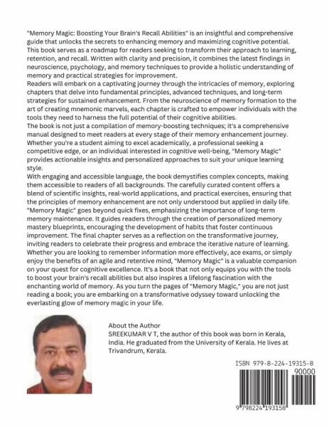 "Memory Magic: Boosting Your Brain's Recall Abilities" is an insightful and comprehensive guide that unlocks the secrets to enhancing memory and maximizing cognitive potential. This book serves as a roadmap for readers seeking to transform their approach to learning, retention, and recall. Written with clarity and precision, it combines the latest findings in neuroscience, psychology, and memory techniques to provide a holistic understanding of memory and practical strategies for improvement. Readers will embark on a captivating journey through the intricacies of memory, exploring chapters that delve into fundamental principles, advanced techniques, and long-term strategies for sustained enhancement. From the neuroscience of memory formation to the art of creating mnemonic marvels, each chapter is crafted to empower individuals with the tools they need to harness the full potential of their cognitive abilities. The book is not just a compilation of memory-boosting techniques; it's a comprehensive manual designed to meet readers at every stage of their memory enhancement journey. Whether you're a student aiming to excel academically, a professional seeking a competitive edge, or an individual interested in cognitive well-being, "Memory Magic" provides actionable insights and personalized approaches to suit your unique learning style. With engaging and accessible language, the book demystifies complex concepts, making them accessible to readers of all backgrounds. The carefully curated content offers a blend of scientific insights, real-world applications, and practical exercises, ensuring that the principles of memory enhancement are not only understood but applied in daily life. "Memory Magic" goes beyond quick fixes, emphasizing the importance of long-term memory maintenance. It guides readers through the creation of personalized memory mastery blueprints, encouraging the development of habits that foster continuous improvement. The final chapter serves as a reflection on the transformative journey, inviting readers to celebrate their progress and embrace the iterative nature of learning. Whether you are looking to remember information more effectively, ace exams, or simply enjoy the benefits of an agile and retentive mind, "Memory Magic" is a valuable companion on your quest for cognitive excellence. It's a book that not only equips you with the tools to boost your brain's recall abilities but also inspires a lifelong fascination with the enchanting world of memory. As you turn the pages of "Memory Magic," you are not just reading a book; you are embarking on a transformative odyssey toward unlocking the everlasting glow of memory magic in your life.
