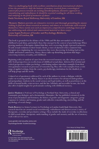 This book is grounded in the debates of the 1980s and 1990s that surrounded recollections of childhood sexual abuse, particularly those that emerged in the context of psychotherapy. When growing numbers of therapists claimed that they were recovering deeply repressed memories of early sexual violations in their female clients, a wave of alarmed critics countered that therapists were implanting the very memories they were discovering. In looking back at this volatile and heated controversy, Memory Matters takes up disturbing questions that linger concerning memory, sexuality, and childhood. Beginning with a re-analysis of cases from the recovered memory era, the volume goes on to offer fresh perspectives on recollections of childhood sexual abuse. Informed by feminist and critical perspectives within psychology, contributing authors introduce examples from their own qualitative research on processes of remembering. They offer rich examples from a wide range of applied settings, from the courts, psychotherapy, institutions for the disabled, to self-help groups and the media. A shared set of questions is addressed by each of the authors to create a dialogue with the reader on recurring motifs. Memory Matters is an ideal resource for advanced undergraduate and postgraduate students in the social sciences and legal studies, as well as practitioners in the fields of mental health, crisis services, and the law. Scholarly and accessible in tone, the book also offers helpful insights for professionals working with childhood memory.
