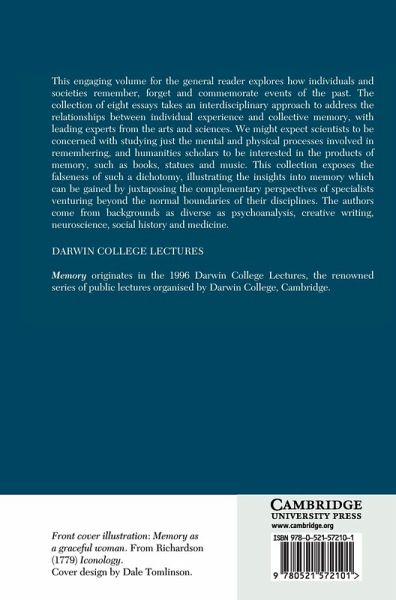 This engaging volume for the general reader explores how individuals and societies remember, forget and commemorate events of the past. The collection of eight essays takes an interdisciplinary approach to address the relationships between individual experience and collective memory, with leading experts from the arts and sciences. We might expect scientists to be concerned with studying just the mental and physical processes involved in remembering, and humanities scholars to be interested in the products of memory, such as books, statues and music. This collection exposes the falseness of such a dichotomy, illustrating the insights into memory which can be gained by juxtaposing the complementary perspectives of specialists venturing beyond the normal boundaries of their disciplines. The authors come from backgrounds as diverse as psychoanalysis, creative writing, neuroscience, social history and medicine.