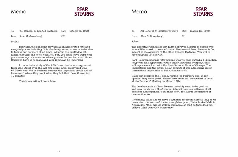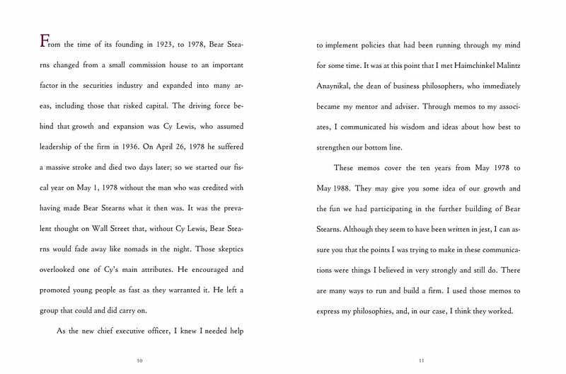 "Ace Greenberg did almost everything better than I do—bridge, magic tricks, dog training, and arbitrage—all the important things in life." —WARREN BUFFETT Alan C. Greenberg, the former chairman of Bear, Stearns, and a celebrated philanthropist, was known throughout the financial world for his biting, quirky but invaluable and wise memos. Read by everyone from Warren Buffett to Jeff Bezos to Tom Peters ("I love this book," the coauthor of In Search of Excellence said), Greenberg’s MEMOS FROM THE CHAIRMAN comprise a unique—and uniquely simple—management philosophy. Make decisions based on common sense. Avoid the herd mentality. Control expenses with unrelenting vigil. Run your business at the highest level of morality. Free your motivated, intelligent people from the chain of command. Always return phone calls promptly and courteously. Never believe your own body odor is perfume. And stay humble, humble, humble.
