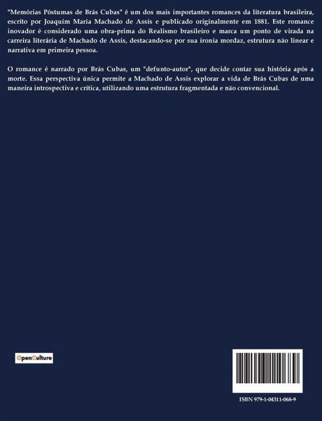 "Memórias Póstumas de Brás Cubas" é um dos mais importantes romances da literatura brasileira, escrito por Joaquim Maria Machado de Assis e publicado originalmente em 1881. Este romance inovador é considerado uma obra-prima do Realismo brasileiro e marca um ponto de virada na carreira literária de Machado de Assis, destacando-se por sua ironia mordaz, estrutura não linear e narrativa em primeira pessoa. O romance é narrado por Brás Cubas, um "defunto-autor", que decide contar sua história após a morte. Essa perspectiva única permite a Machado de Assis explorar a vida de Brás Cubas de uma maneira introspectiva e crítica, utilizando uma estrutura fragmentada e não convencional.