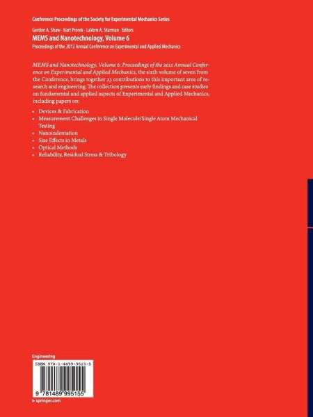 MEMS and Nanotechnology, Volume 6: Proceedings of the 2012 Annual Conference on Experimental and Applied Mechanics represents one of seven volumes of technical papers presented at the Society for Experimental Mechanics SEM 12th International Congress & Exposition on Experimental and Applied Mechanics, held at Costa Mesa, California, June 11-14, 2012. The full set of proceedings also includes volumes on Dynamic Behavior of Materials, Challenges in Mechanics of Time-Dependent Materials and Processes in Conventional and Multifunctional Materials, Imaging Methods for Novel Materials and Challenging Applications, Experimental and Applied Mechanics, Mechanics of Biological Systems and Materials and, Composite Materials and Joining Technologies for Composites.