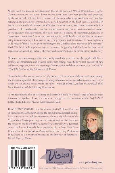 "Many believe that menstruation is 'lady business.' Not so. Menstruation's complicated and often contradictory meanings are made through what David Linton dubs, 'the menstrual transaction.' Indeed, men have been a part of the conversation all along, but their role has been limited to that of outsiders, myth makers and antagonists who either run for the hills or weaponize their ignorance and discomfort. We can do better. The shifting of men (and boys) from menstrual bullies to menstrual allies requires a good hard look at the various texts that transform a bodily process into so much more. A great place to start is Linton's carefully curated tour through the sometimes painful, often funny and always illuminating menstrual discourses that leave no doubt we can and we must rewrite the rules." -Chris Bobel, Author of New Blood: Third Wave Feminism and the Politics of Menstruation and The Managed Body: Developing Girls and Menstrual Health in the Global South