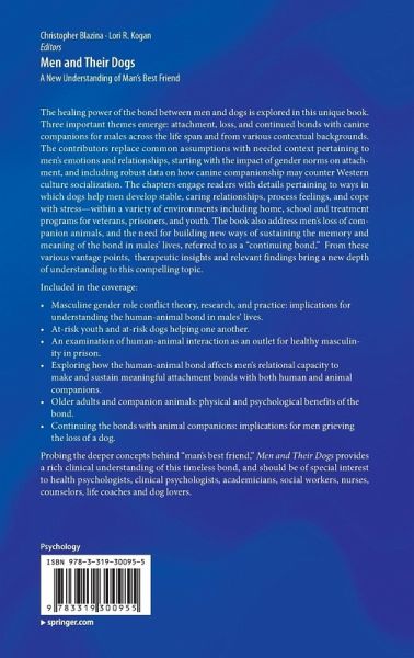 "In Men and Their Dogs, psychologists Chris Blazina, Lori Kogan, and other authors provide a set of intriguing chapters that examine, scientifically, how and why dogs might, can, and do help us, focusing on the benefits for men of having a relationship with a dog. ... Men and Their Dogs will become the 'go to' book for researchers interested in scientific approaches to assessing the therapeutic usefulness of interactions between dogs and their men." (Robert W. Mitchell, Anthrozoös, Vol. 30 (1), 2017)