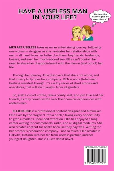 In this bold and unapologetically honest exploration of gender dynamics, "MEN ARE USELESS" dives deep into the complexities of male-female relationships, through a series of personal anecdotes and reflections. The author, drawing from her own experiences and those of numerous women she interviewed, presents a candid narrative that oscillates between humorous observations and poignant truths about men's behaviour in various aspects of life. By exploring men's stubborn idleness, parenting negligence, emotional unavailability, and sometimes-loveable quirkiness, "MEN ARE USELESS" is more than a male versus female critique - it's a journey into understanding the male psyche. The author's love-hate relationship with men is evident in her appreciation of their qualities, even as she questions their contributions to women's lives. The narrative is not only about pointing out flaws, but it's also a call for women to embrace their own strengths and resilience. It's a story of enlightenment, akin to moving "toward the light," where women learn to find freedom in accepting the unchangeable nature of men, and focus on their own growth and happiness. Balancing wit with wisdom, "MEN ARE USELESS" is more than a lamentation; it's a celebration of womanhood and a guide to navigating the complexities of relationships with the opposite sex. It's a book for every woman who has loved, laughed, and learned from the men in her life, and for every man curious enough to understand what women truly think about them.