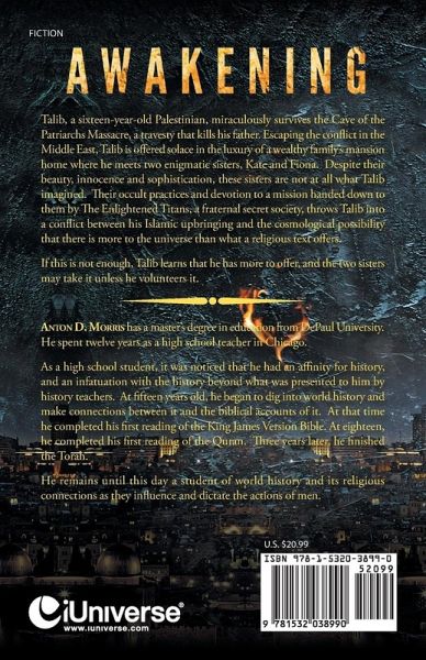 Talib, a sixteen-year-old Palestinian, miraculously survives the Cave of the Patriarchs Massacre, a travesty that kills his father. Escaping the conflict in the Middle East, Talib is offered solace in the luxury of a wealthy family's mansion home where he meets two enigmatic sisters, Kate and Fiona. Despite their beauty, innocence and sophistication, these sisters are not at all what Talib imagined. Their occult practices and devotion to a mission handed down to them by The Enlightened Titans, a fraternal secret society, throws Talib into a conflict between his Islamic upbringing and the cosmological possibility that there is more to the universe than what a religious text offers. If this is not enough, Talib learns that he has more to offer, and the two sisters may take it unless he volunteers it.